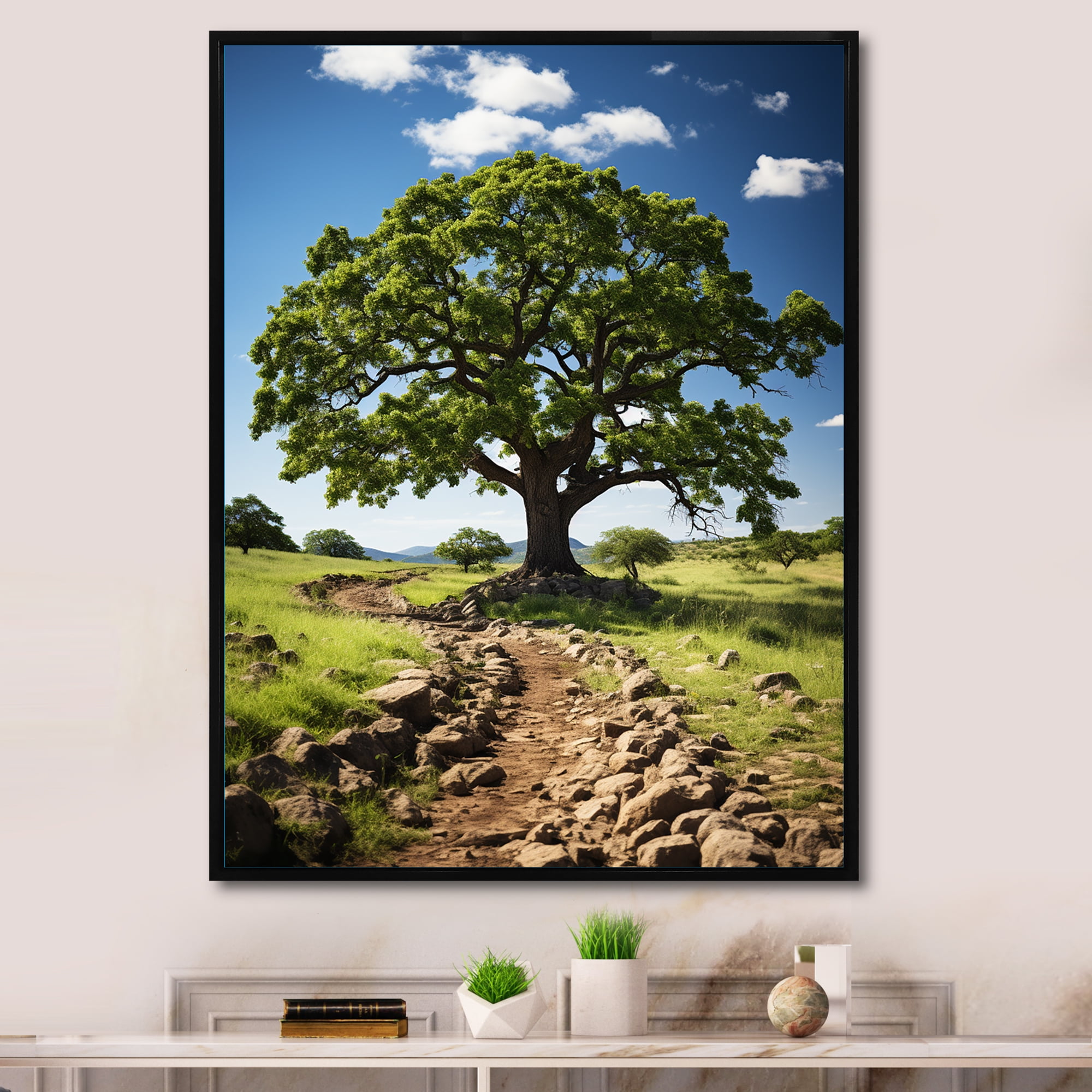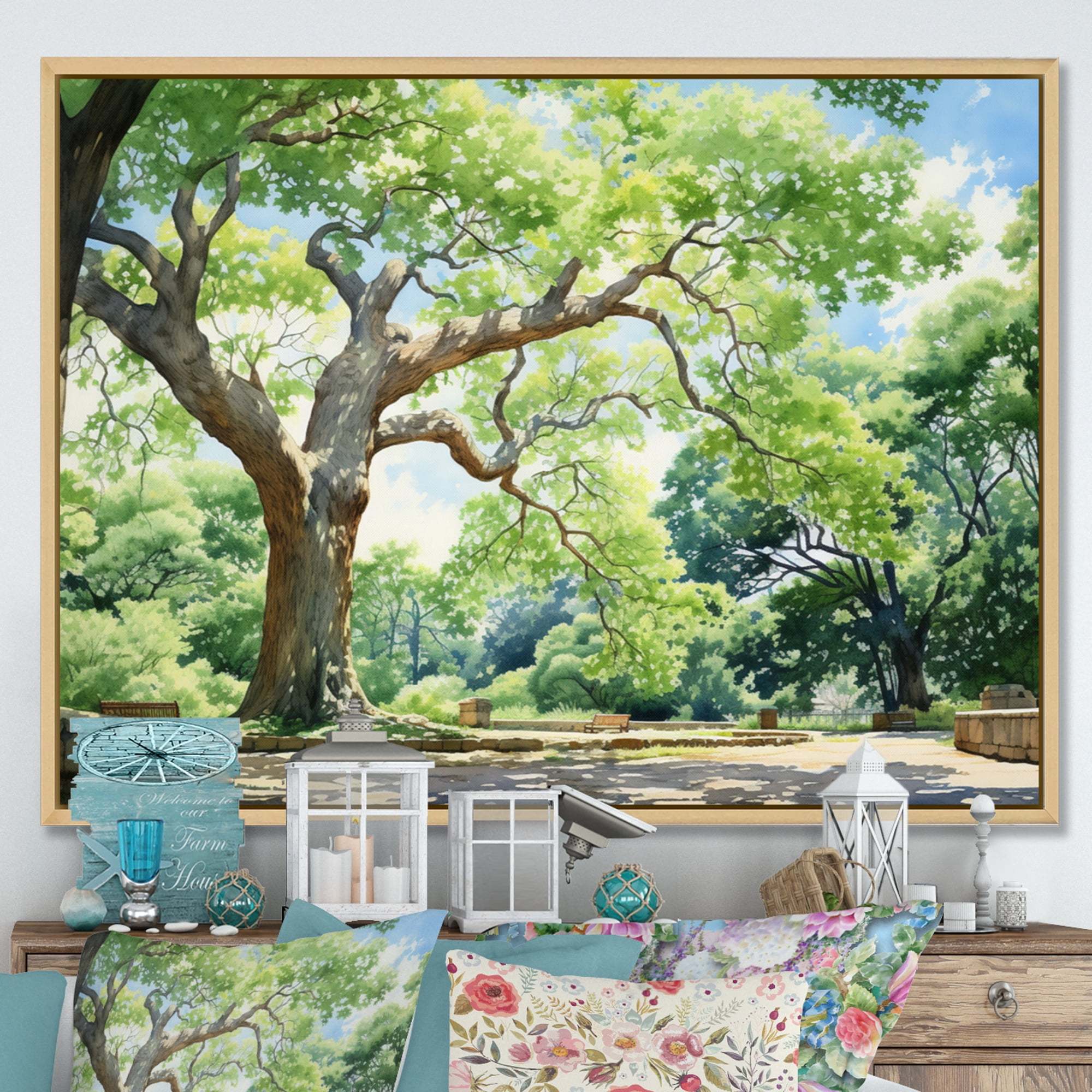 Designart "Summer'S Tree Magic I" Landscape Trees Floater Framed Wall ...