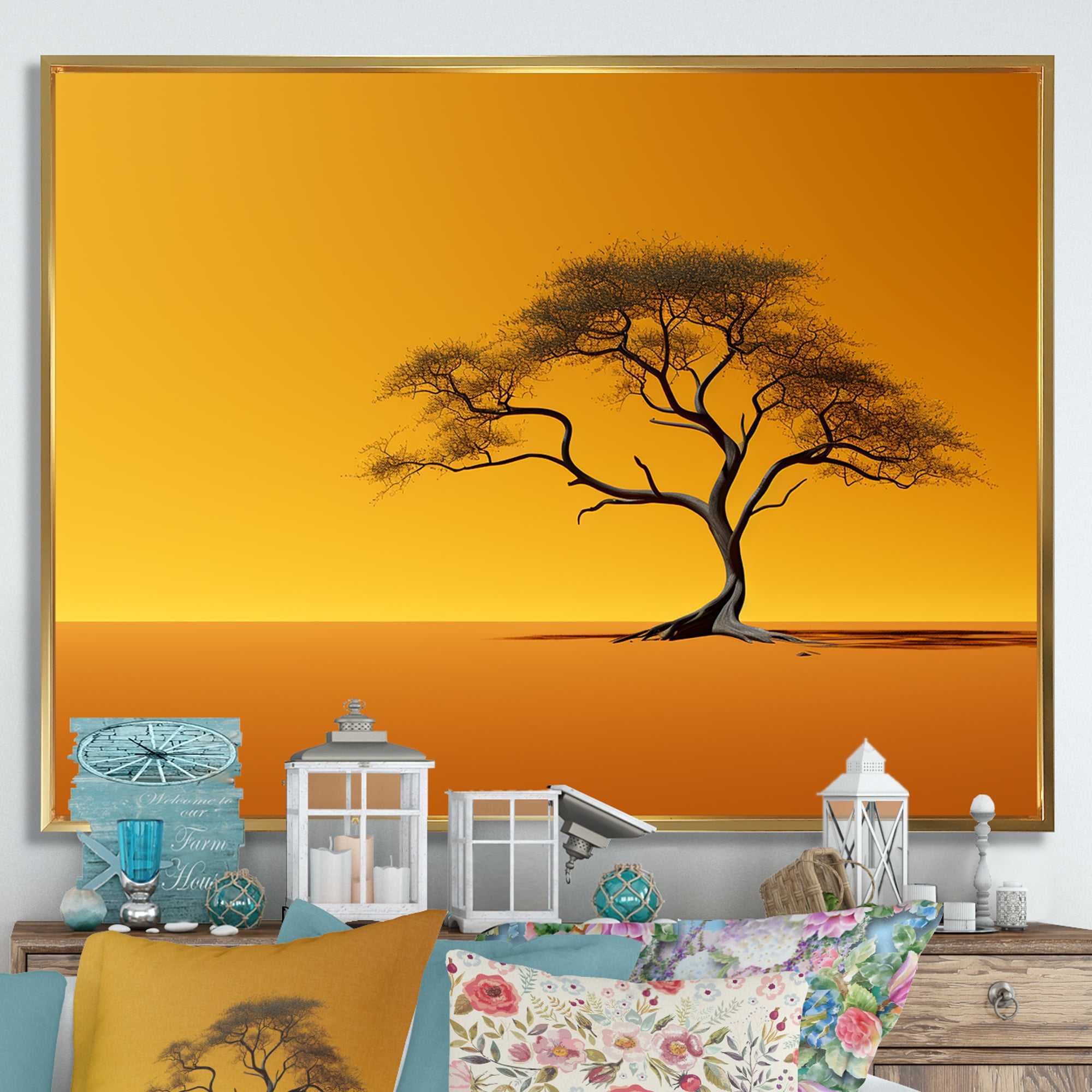 Designart "Essence Of African Trees I" Tree African Floater Framed Wall ...