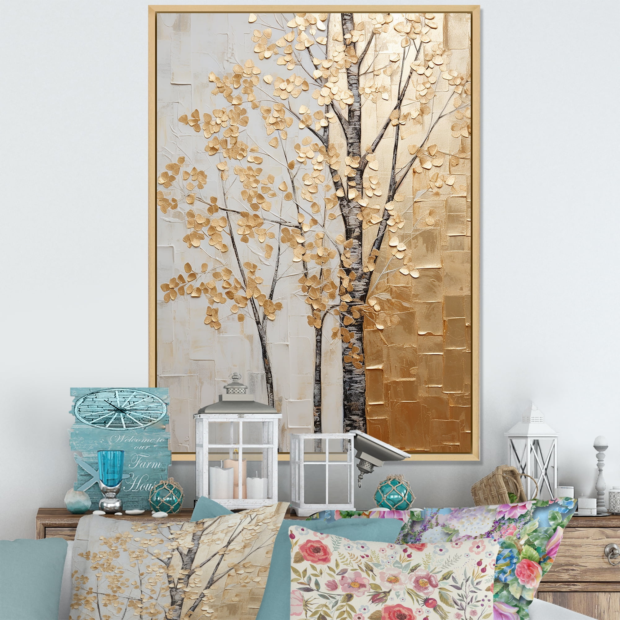 Designart "Golden Harmony Tree Landscape II" Landscape Trees Floater ...