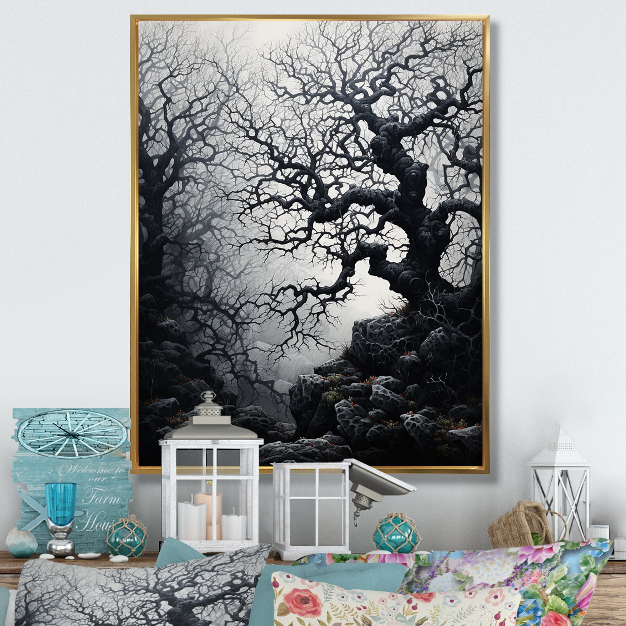 Designart "Grey Tree Eternal Forms II" Landscape Trees Floater Framed ...