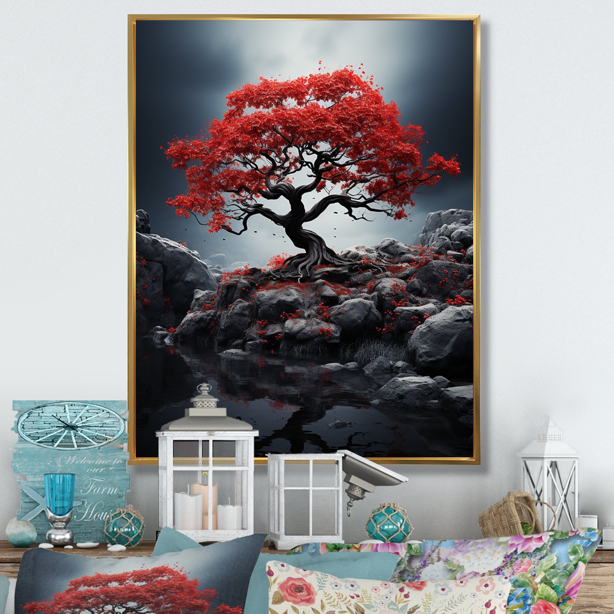 Designart "Autumnal Red Hue Marking The Maples" Tree Maple Floater ...