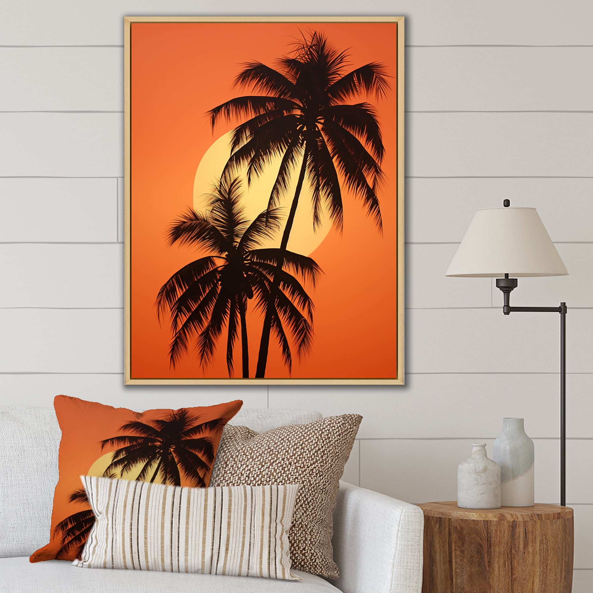 Designart "Sunset Under The Tangerine Twilight Palm Tree" Palms & Palm ...