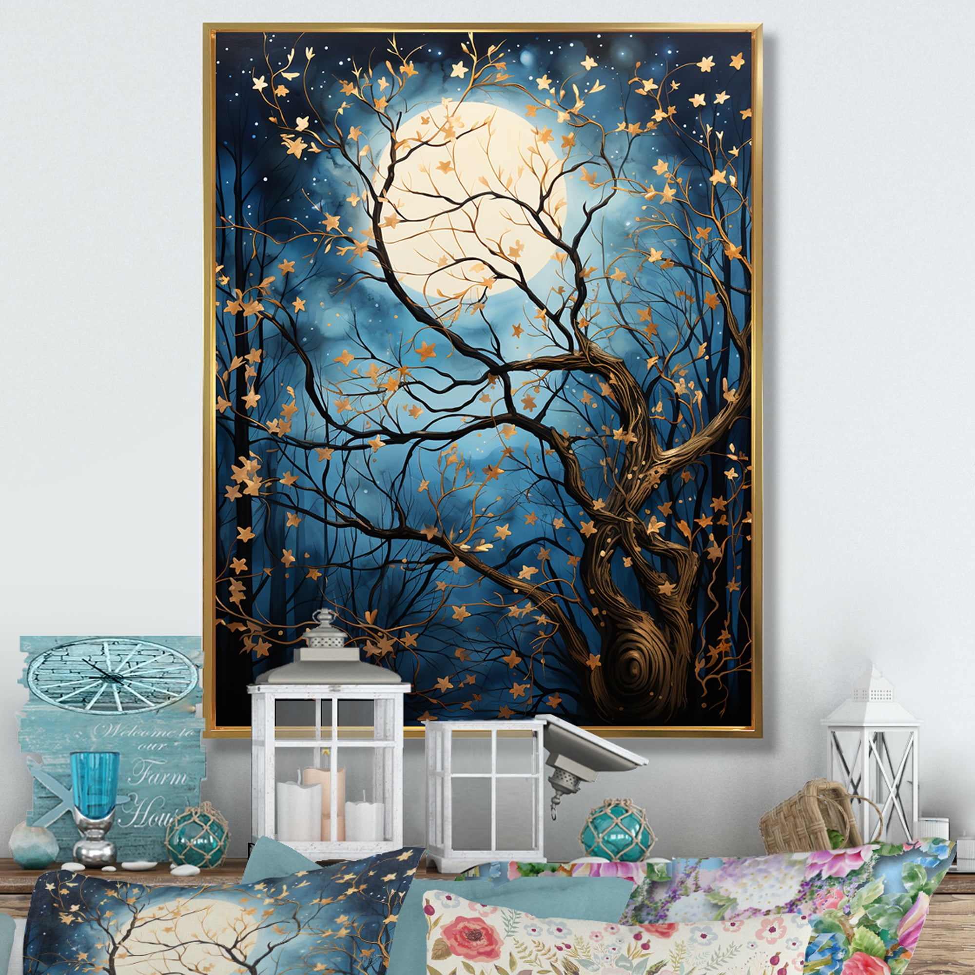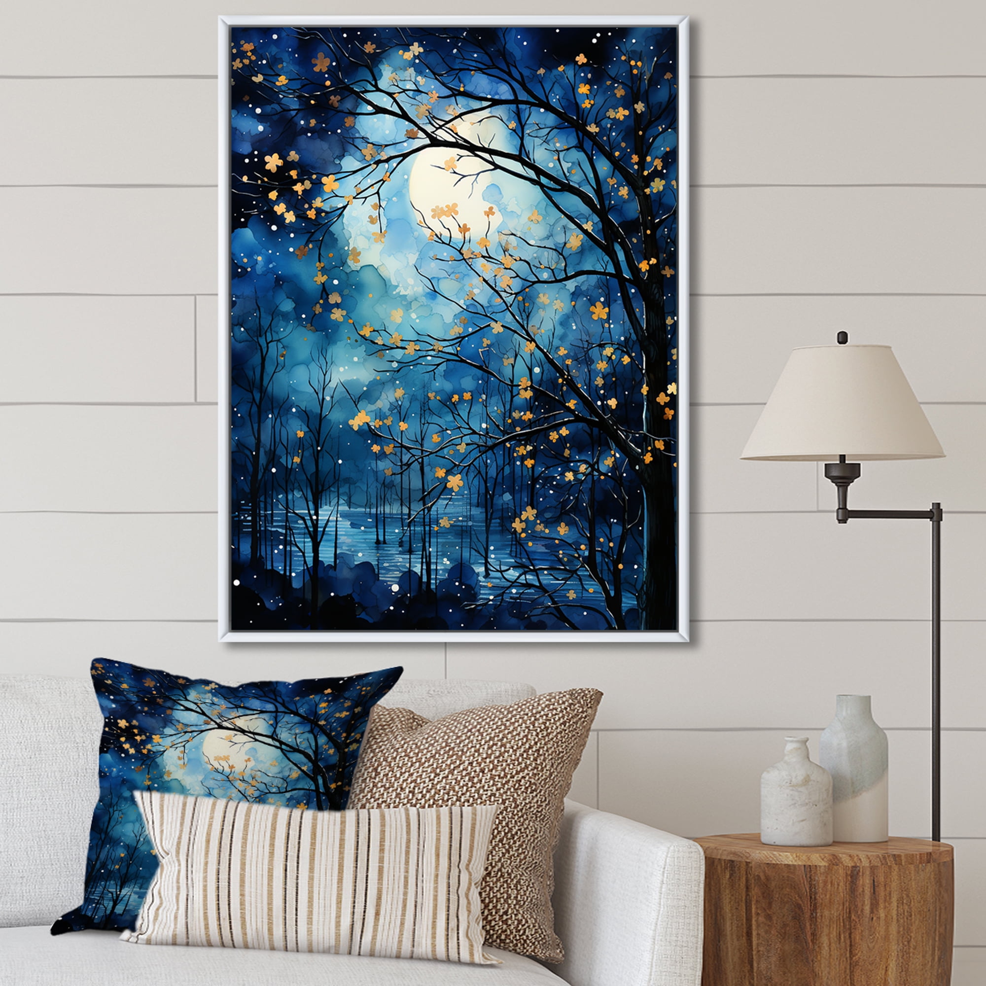 Designart "Tree Moonlit form I" Landscape Trees Floater Framed Wall Art ...