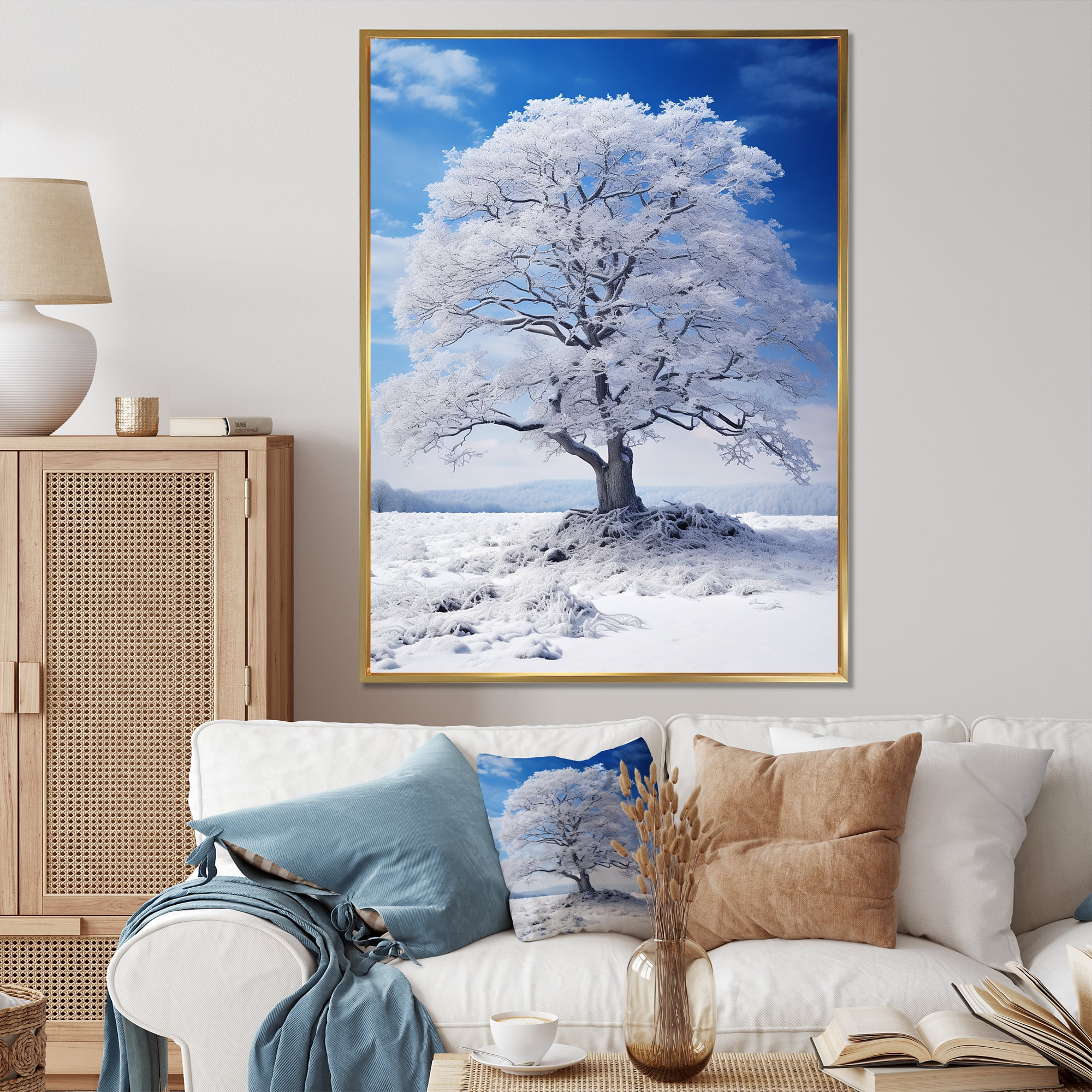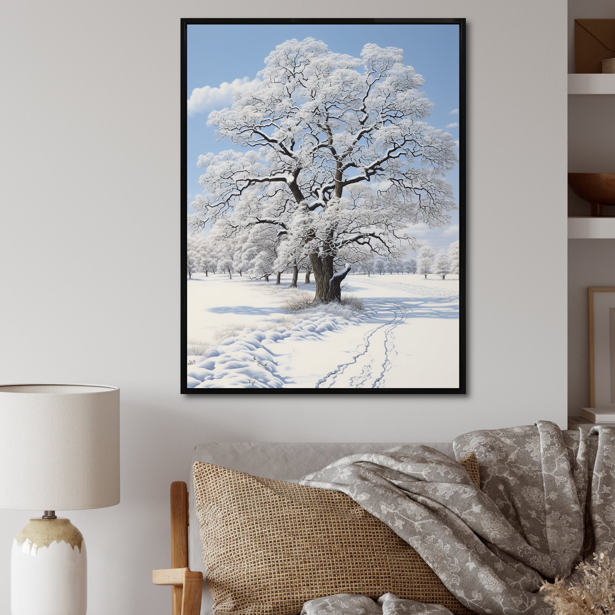 Designart "White Tree Winters beauty" Landscape Trees Floater Framed ...