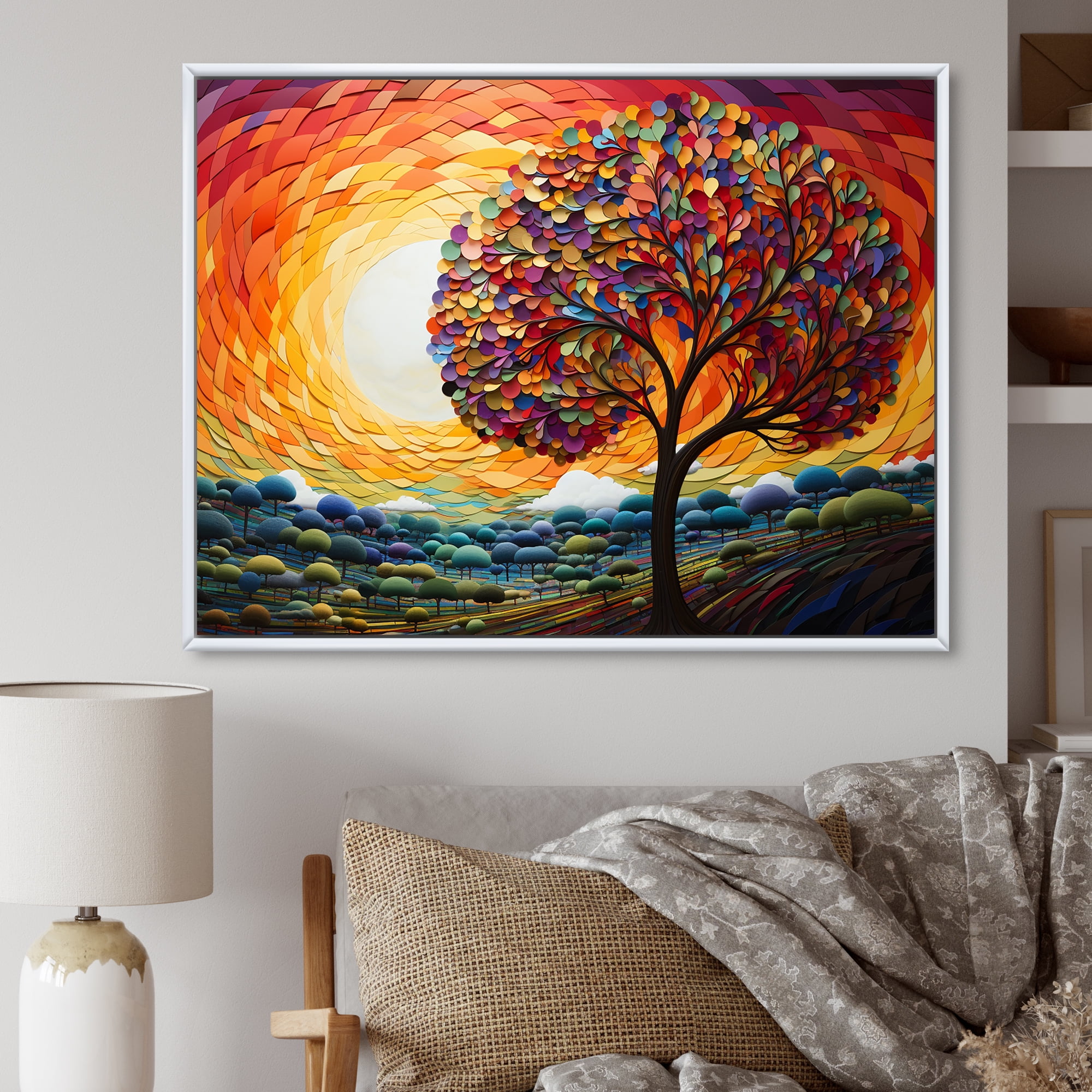 Designart "modern Tree Arc Of Colors I" Landscape Trees Floater Framed ...