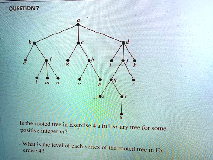 SOLVED: QUESTION 7 Is the rooted tree in Exercise 4 a full m-ary tree ...