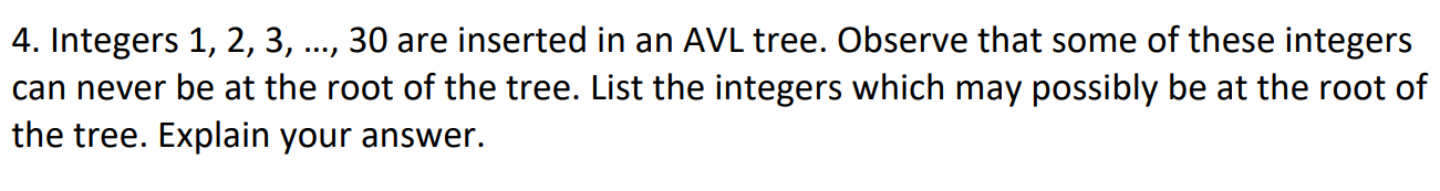 Solved 4. Integers 1, 2, 3, ..., 30 are inserted in an AVL | Chegg.com