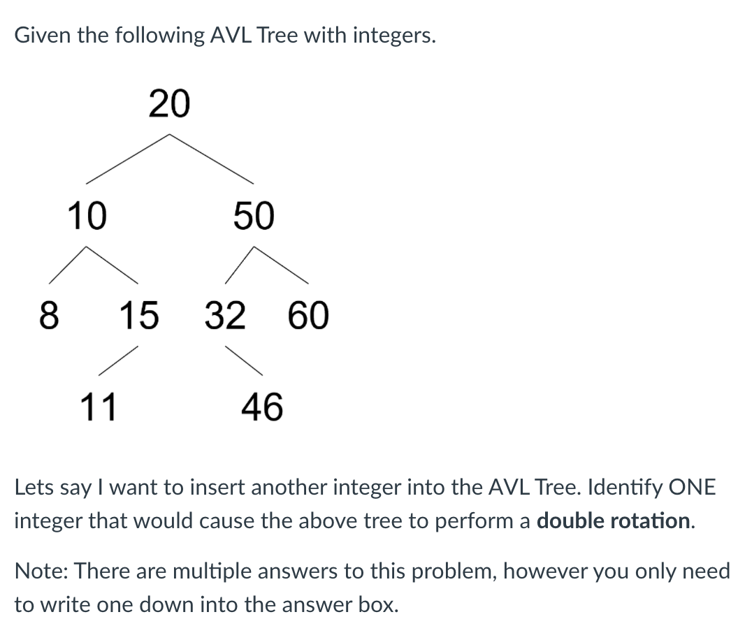 Solved Given the following AVL Tree with integers. 20 10 50 | Chegg.com
