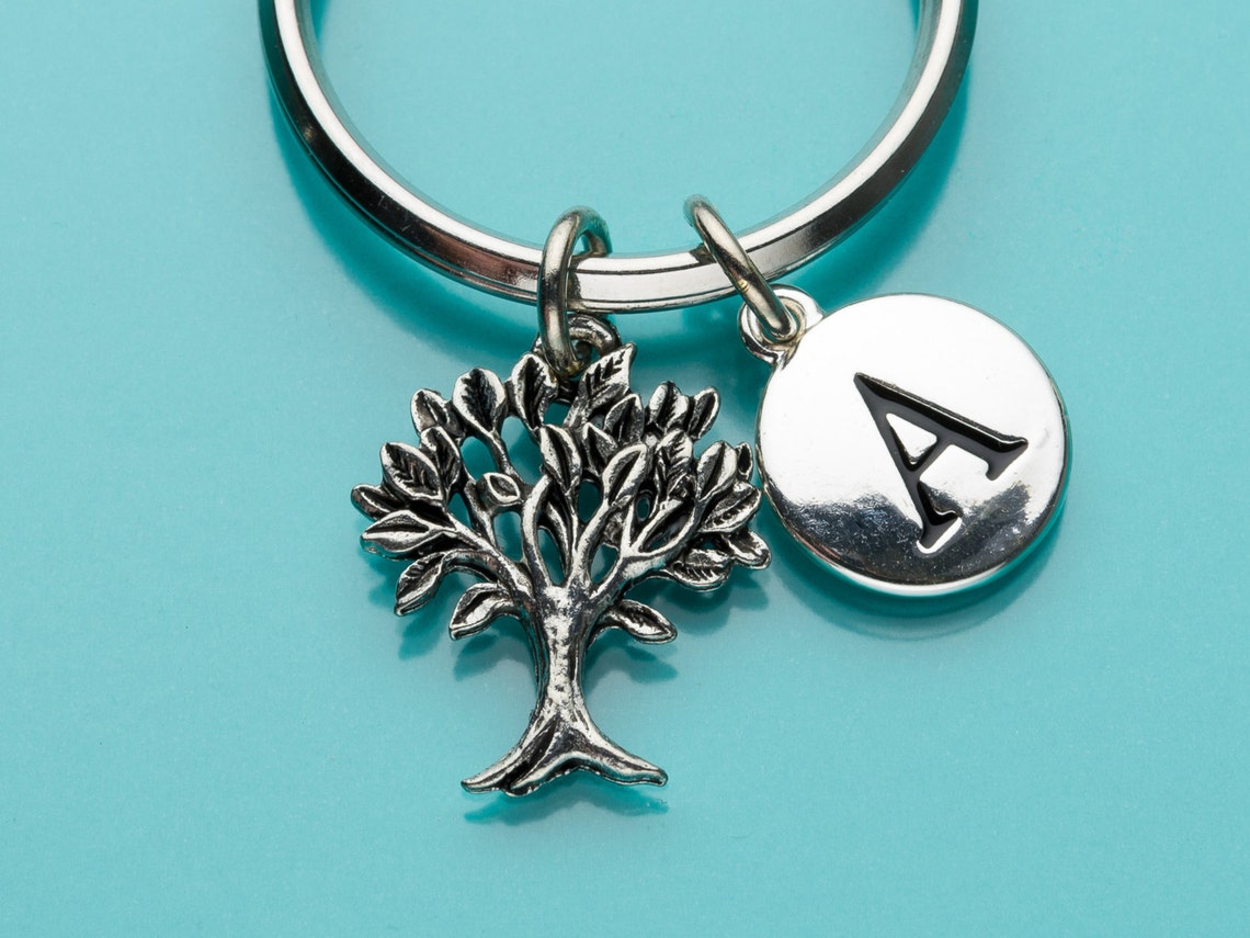 Tree of Life Keychain, Tree of Life Key Chain, Tree Key Ring, Initial ...