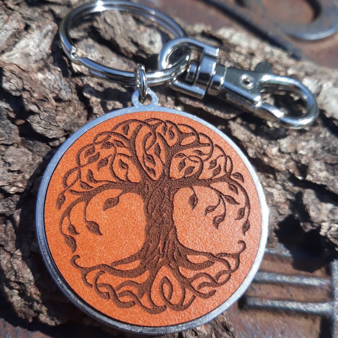 Engraved Tree of Life Leather Keychain - Personalized Stainless Steel ...