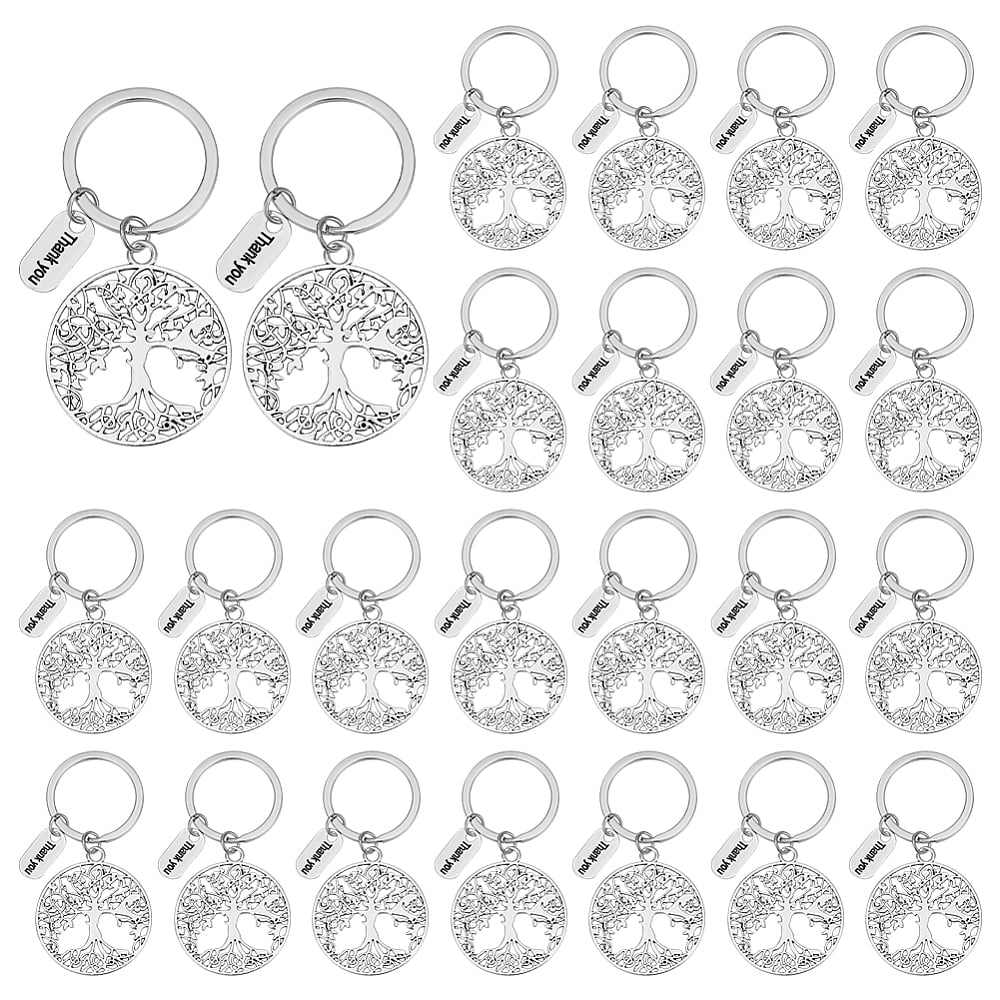 24Pcs Zinc Alloy Keychains Tree of Life Silver Platinum 71mm for making ...