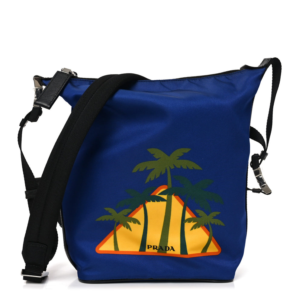 Prada Tessuto Nylon Palm Tree Print Bucket Bag Bluette 1852250 ...