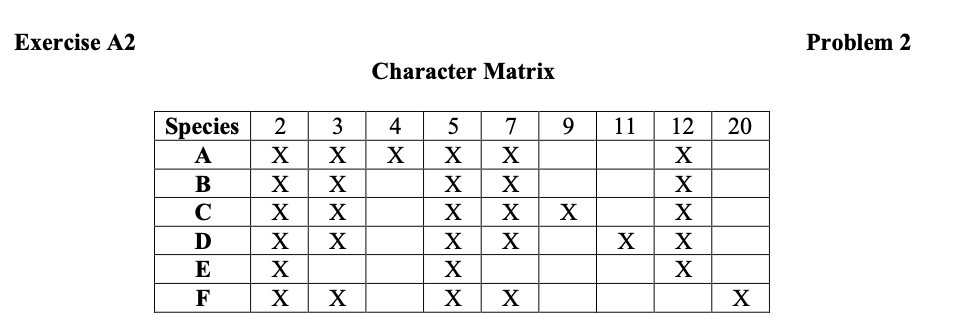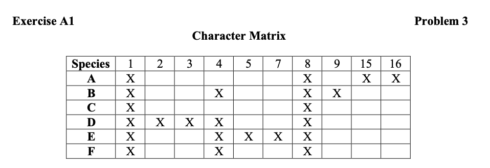 Exercise A1 Problem 1 Character Matrix Exercise A2 | Chegg.com