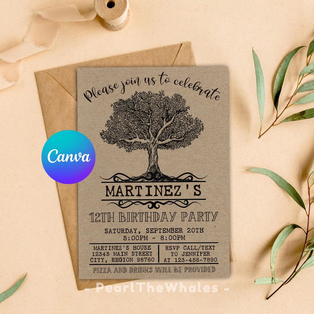 Editable Rustic Tree Birthday Invitation, Rustic Tree Invitation ...