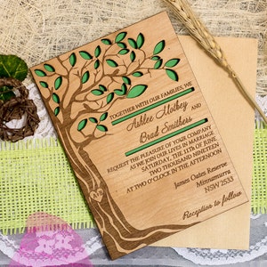 Tree Engraved Invitation, Wooden Wedding Invitation, Real Wood, Laser ...