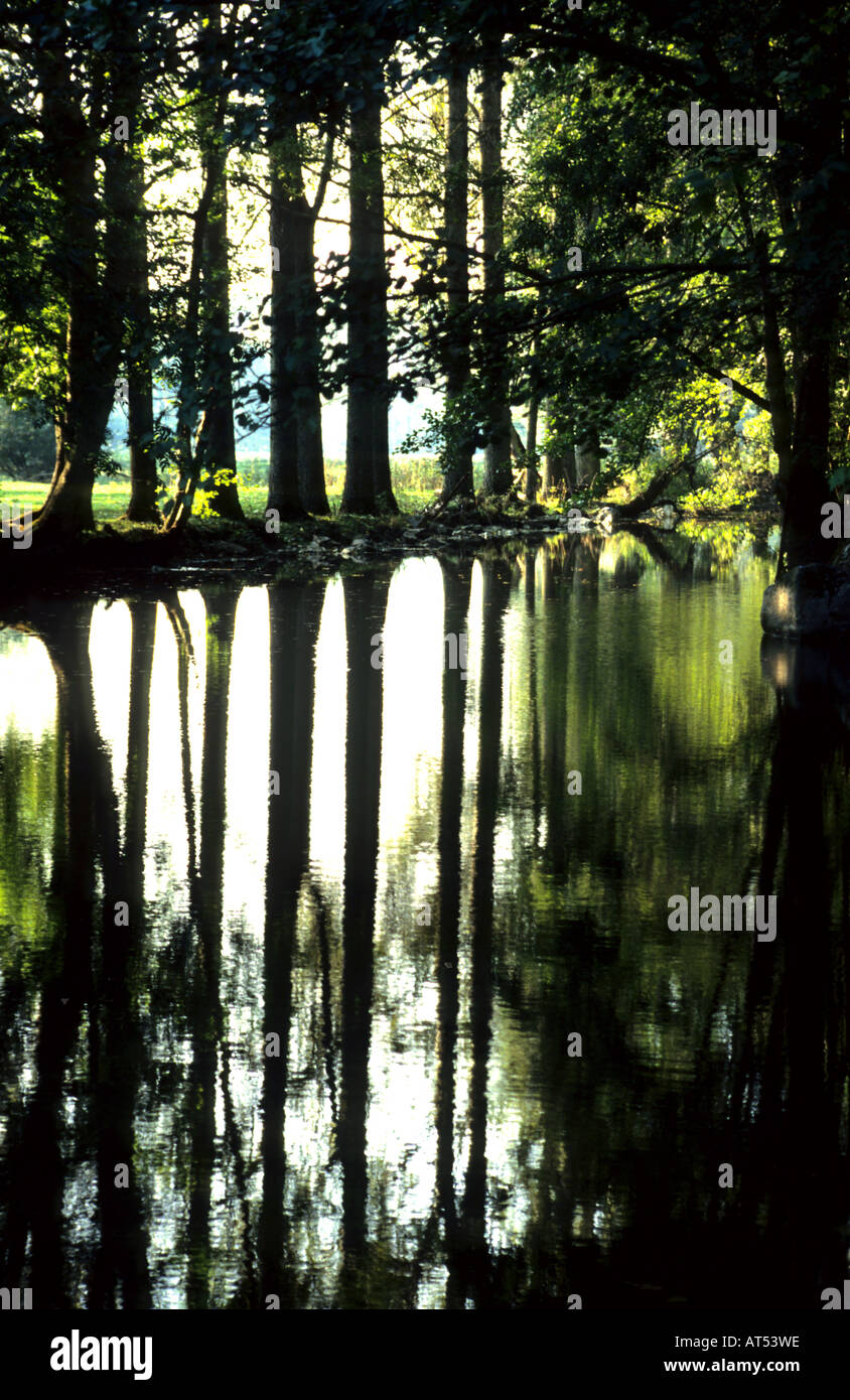 Tree trees wood forest reflected image reflection Stock Photo - Alamy