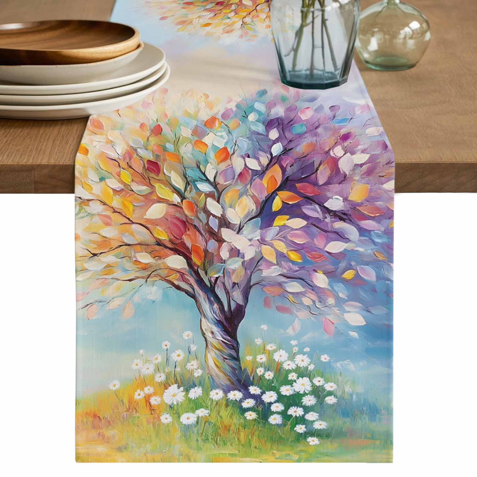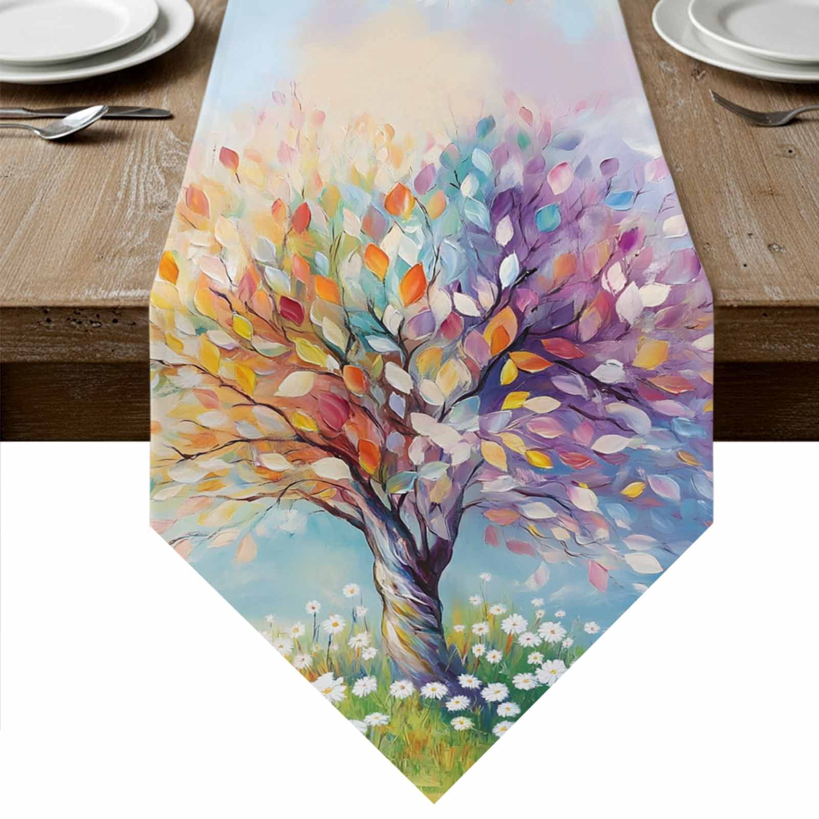 Colorful Tree Life Table Runner 120 Inches, Spring Garden Abstract ...
