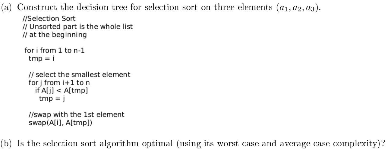 Solved (a) Construct the decision tree for selection sort on | Chegg.com