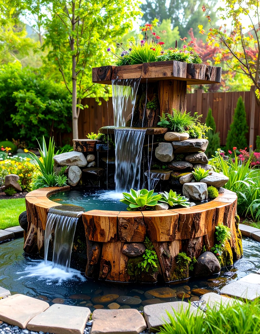 Tree Stump Ideas Outdoor Decor Garden | Garden fountains, Garden ...