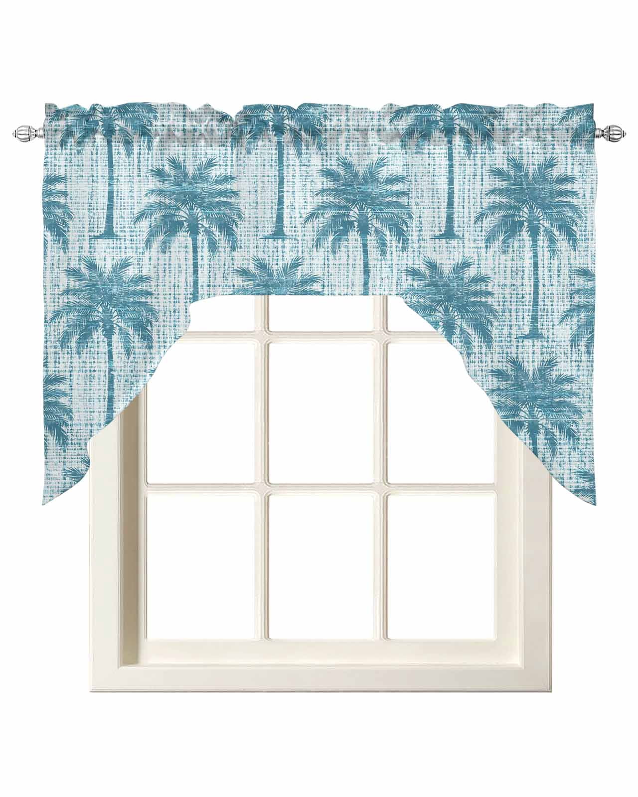 Blue Palm Tree Swag Valance for Window, Country Linen Texture Tropical ...