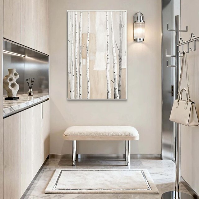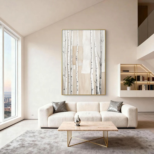 Original Abstract Tree Painting on Canvas Neutral Textured Forest Wall ...