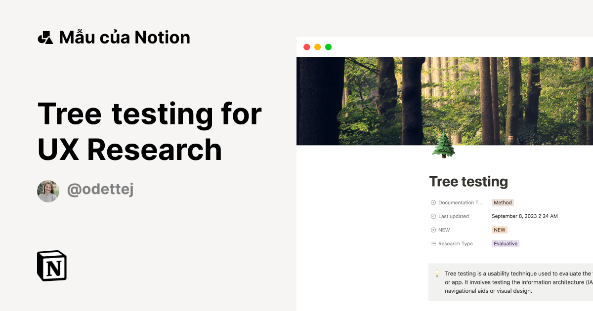 Tree testing for UX Research Mẫu do Odette Jansen tạo | Thị trường Notion
