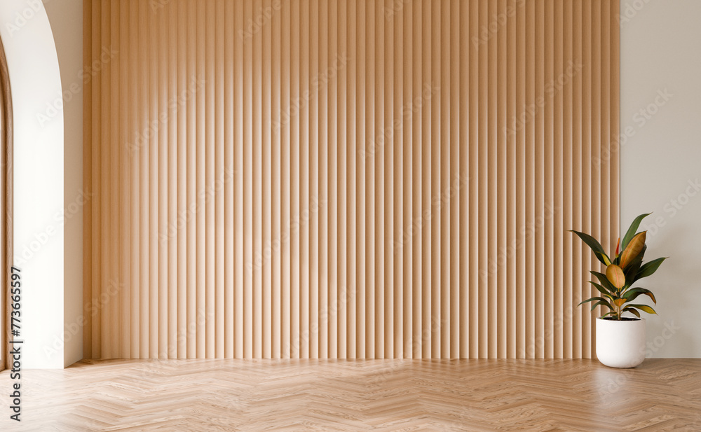 Wood cladding panel wall with rubber tree plant, Wood floor, Interior ...