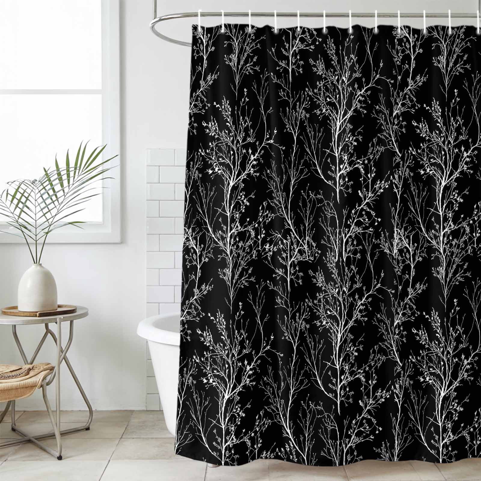 Bathroom Shower Curtain Abstract White Tree Branch on Black Waterproof ...