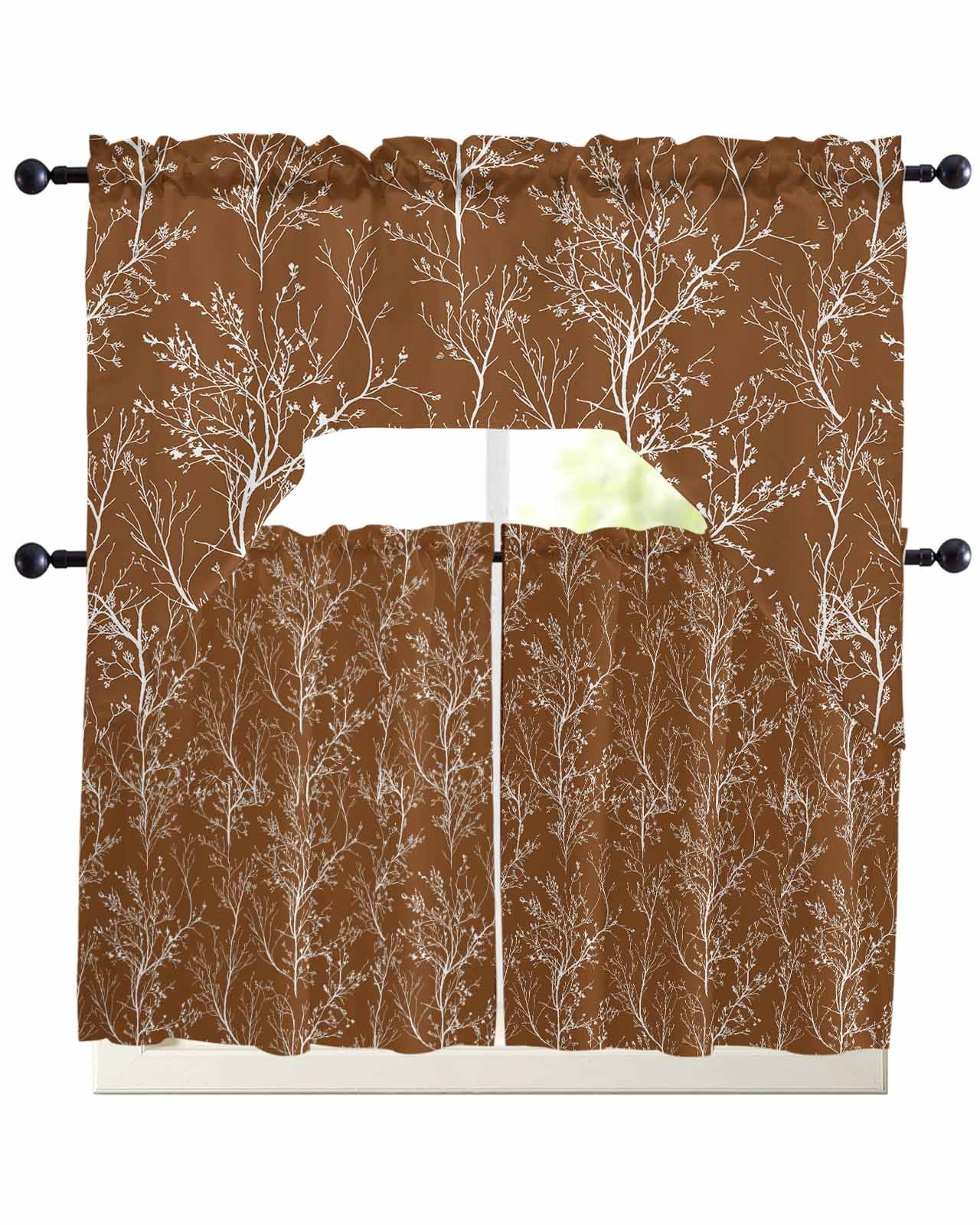 Brown Orange Valances for Window 2 Pack, White Tree Branch Botanical ...