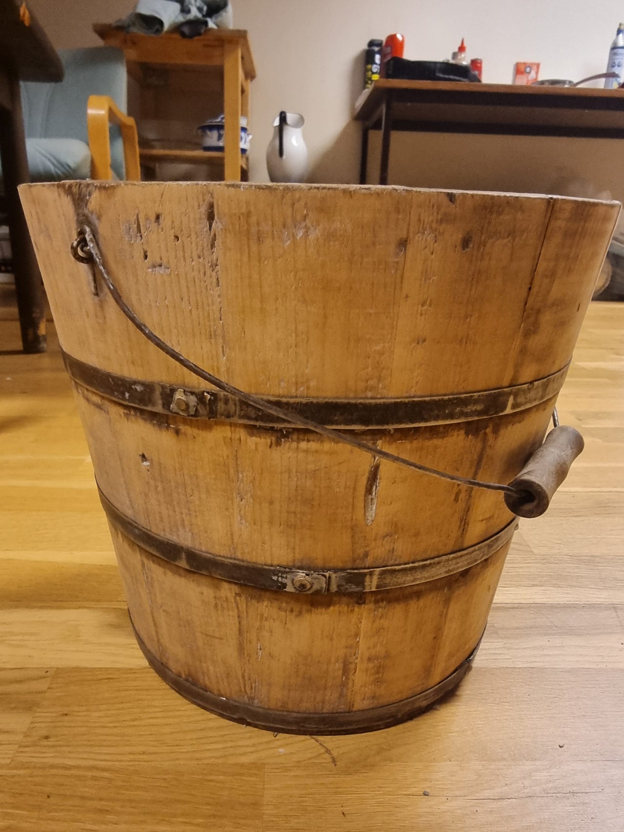 veldig gammel trebøtte, trekar | FINN-torget