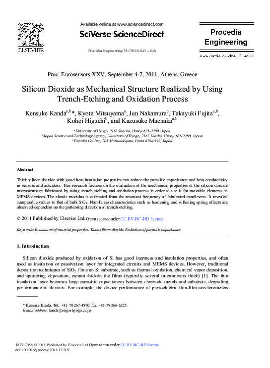 (PDF) Silicon Dioxide as Mechanical Structure Realized by Using Trench ...