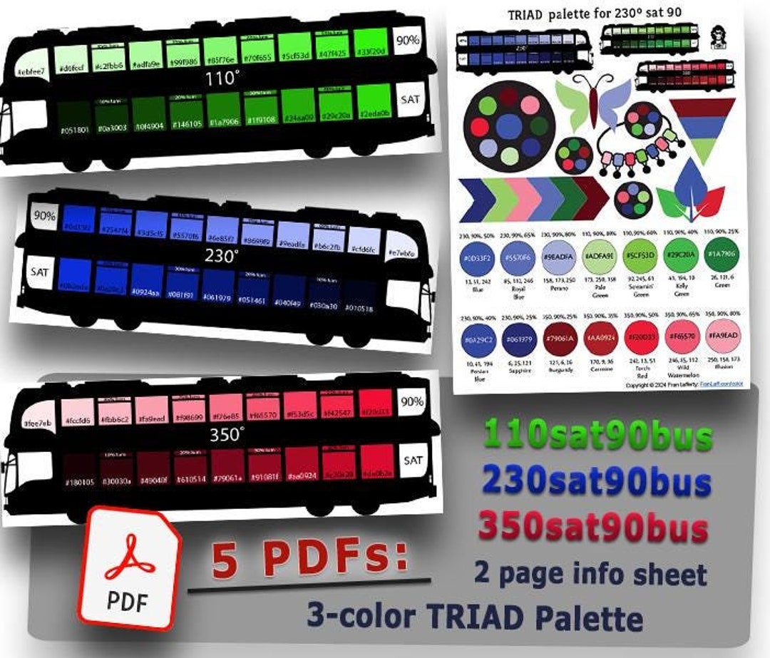 230sat90 Triad Palette Using HSL Color Math and Hex Code Numbers - Etsy