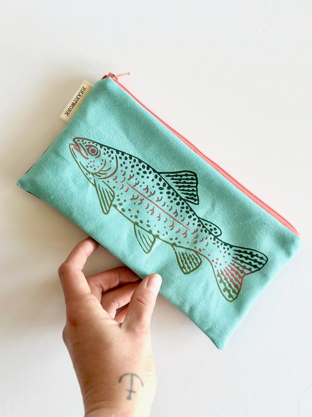 Rainbow Trout Tri-color Screen Print Aqua handmade Pouch With Original ...
