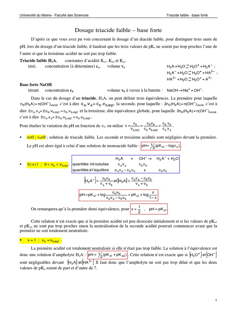 Dosage d'un triacide faible par base forte | PDF | Ph | Constante d'acidité