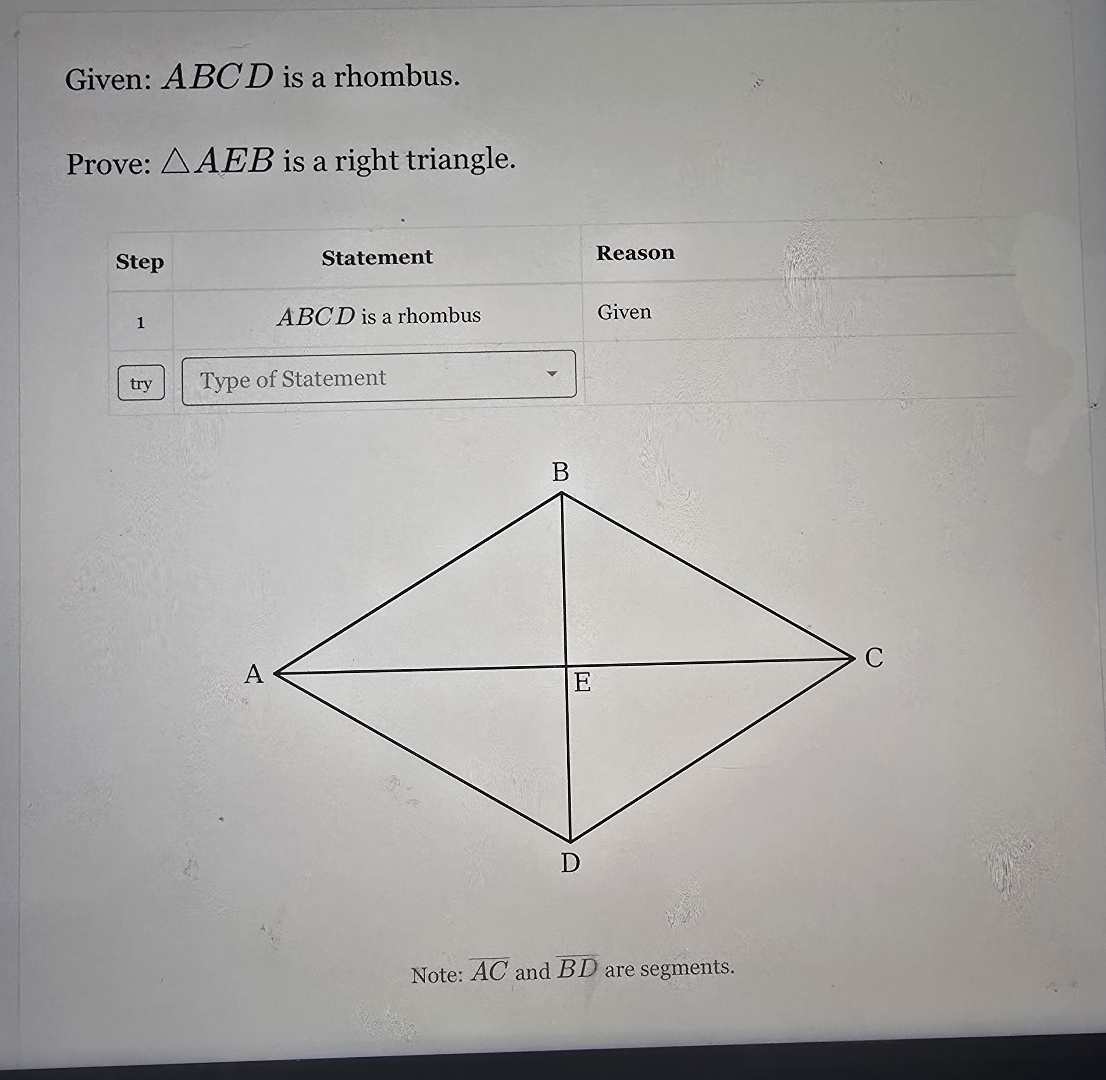 Solved Given: ABCD is a rhombus.Prove: triangle AEB is a | Chegg.com