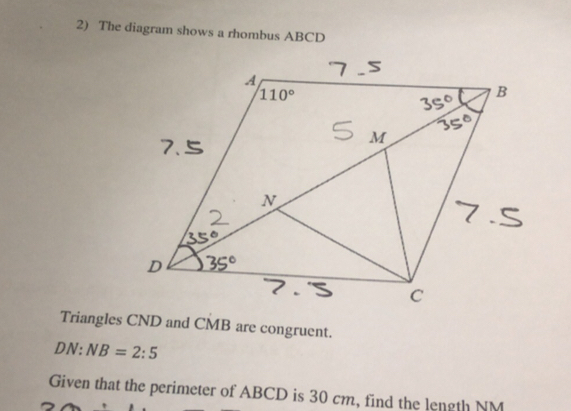 Solved: The diagram shows a rhombus ABCD Triangles CND and CMB are ...