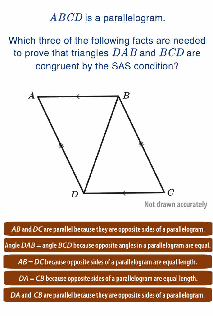Solved: ABCD is a parallelogram. Which three of the following facts are ...