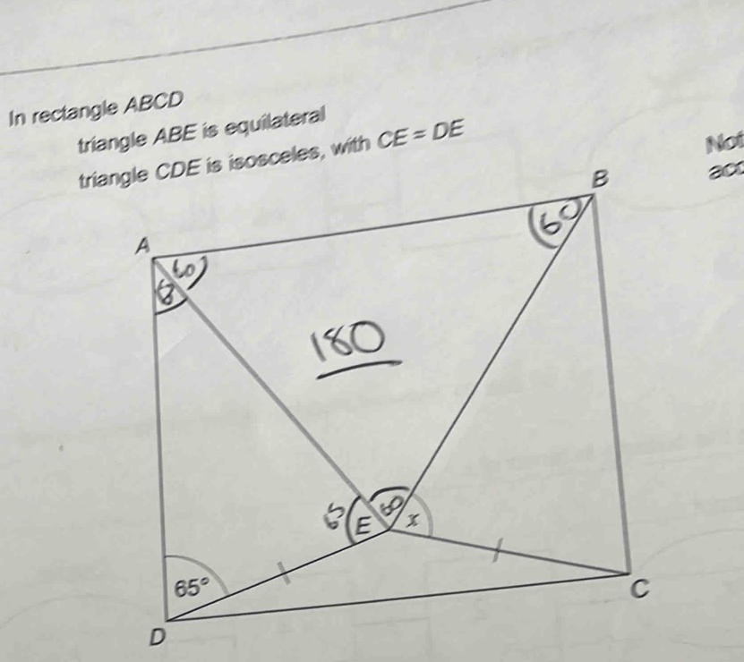 In rectangle ABCD triangle ABE is equilateral triangle CDE is isosceles ...