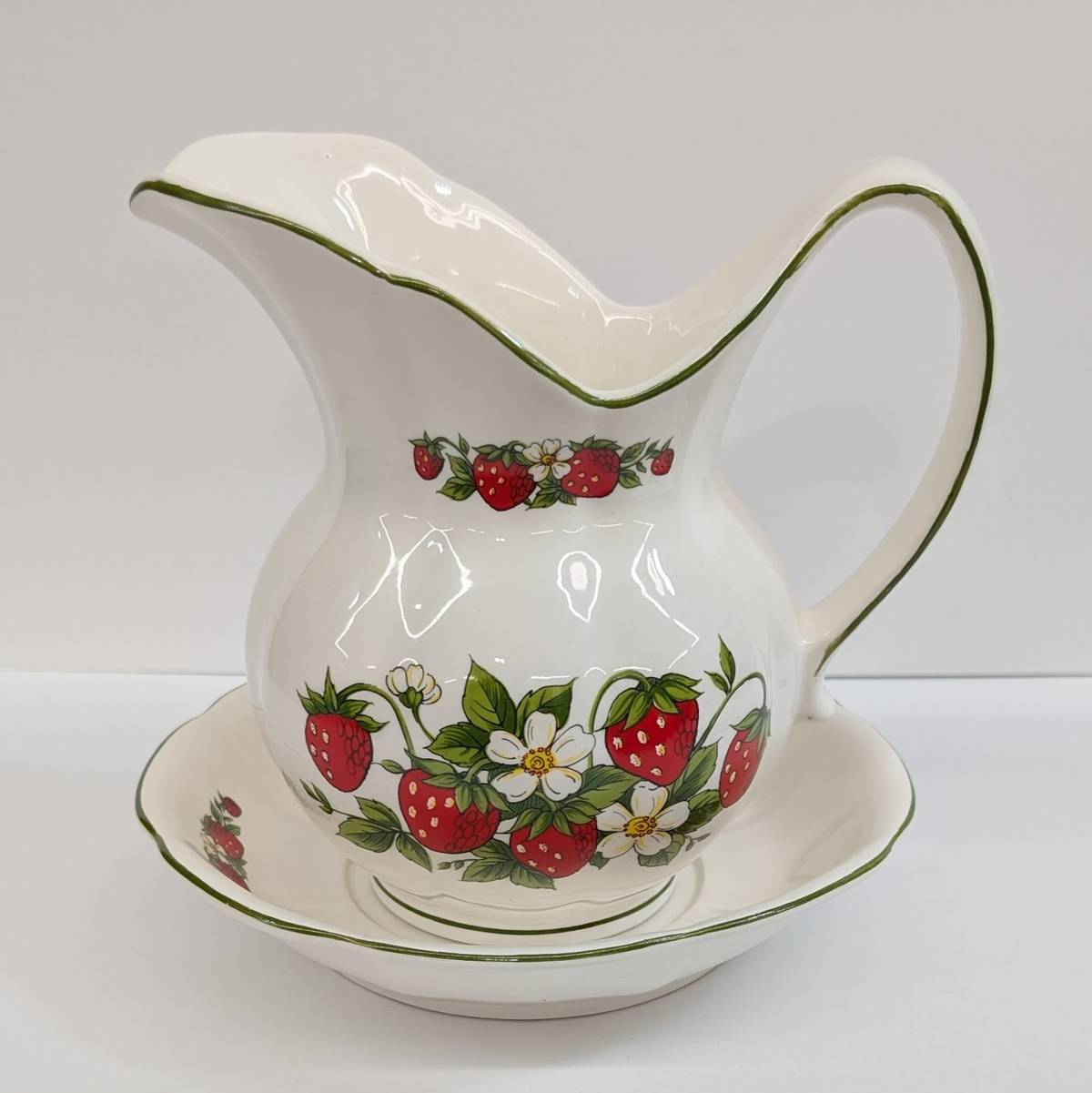 Niknax · Vintage Ceramic Strawberry Water Pitcher & Basin Bowl Made in ...