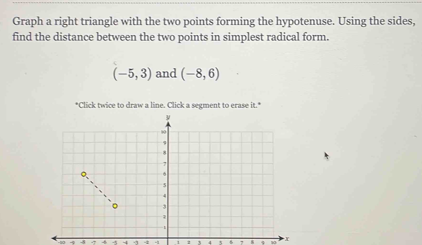 Solved: Graph a right triangle with the two points forming the ...