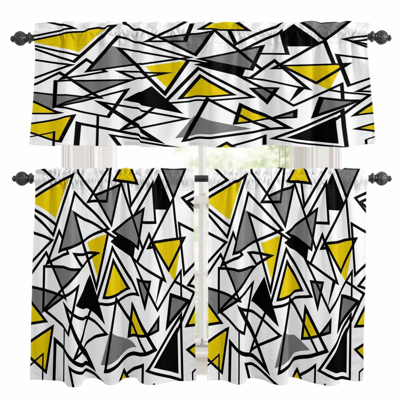 Abstract Lines Kitchen Curtains Valance and Tier Set Black Gray Yellow ...
