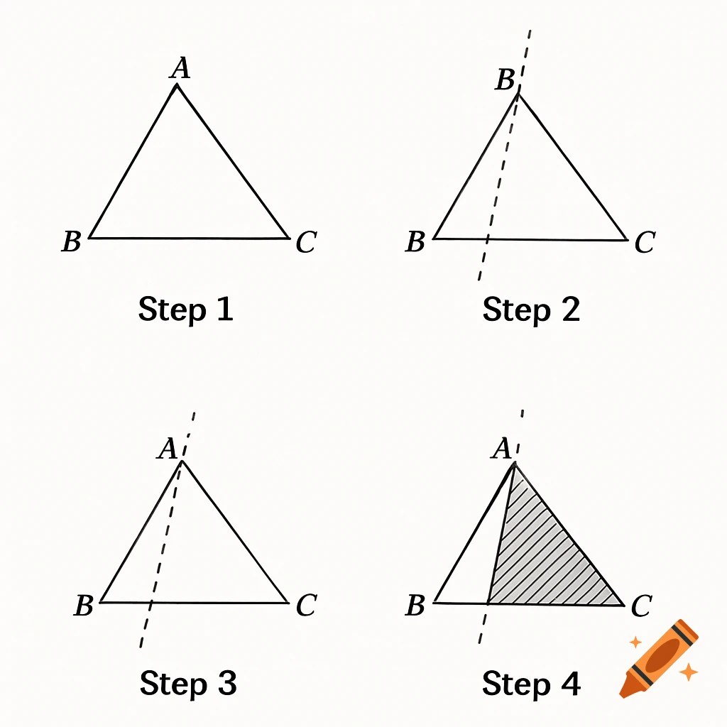 Step-by-step diagram showing how to find a region within a triangle ABC ...