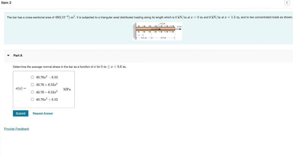 SOLVED: 8kN 4kN 0.9m The bar has a cross-sectional area of 400(10-6 m2 ...