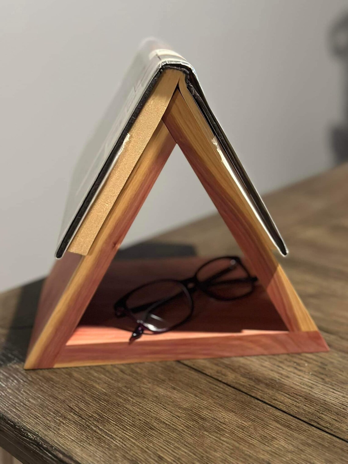 Triangle Bookstand, Triangle Book Holder, Nightstand Bookmark, Rustic ...