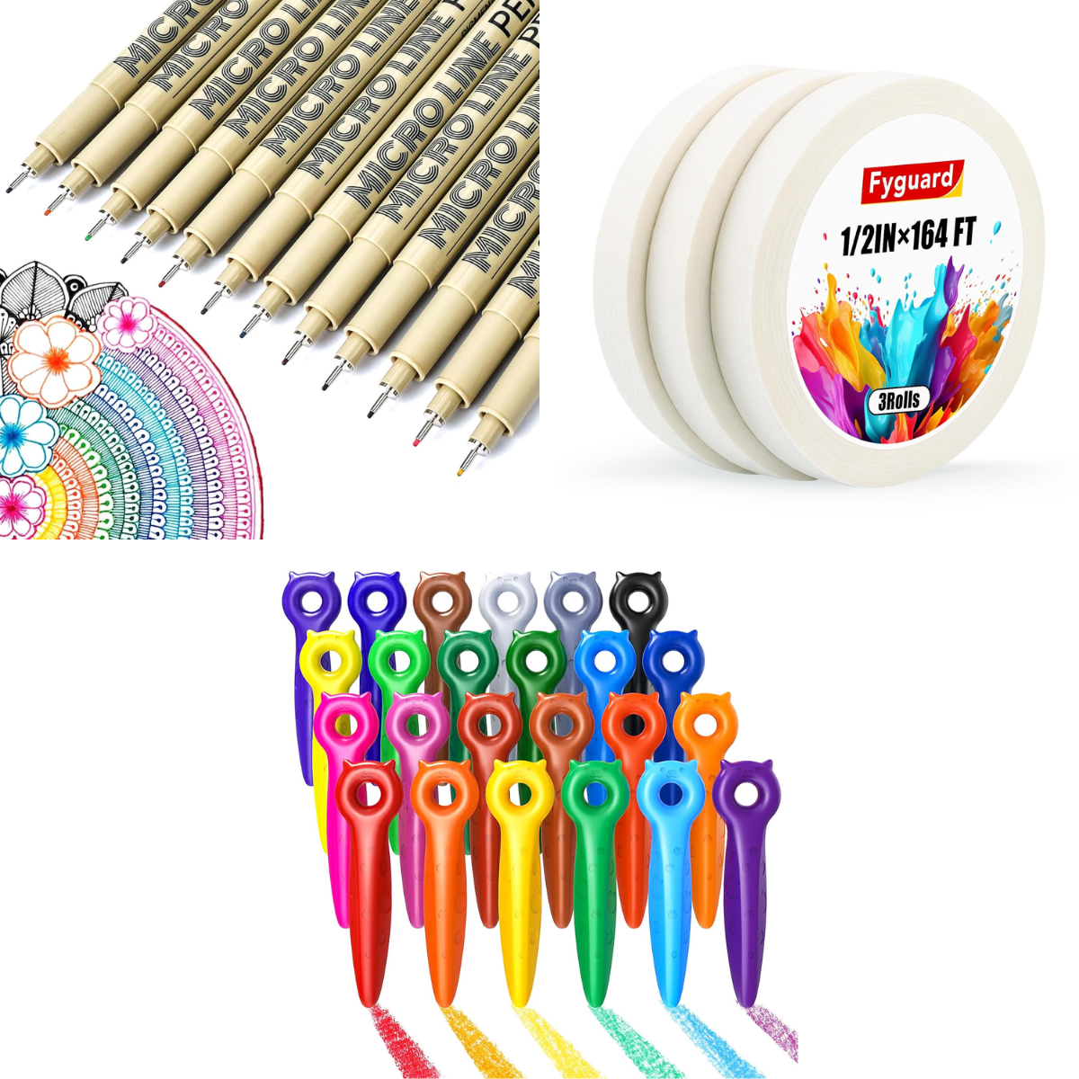 12 Micro Fineliner Pens $6+ | 3 Rolls Artist Tape $4+ | 24 Triangle ...