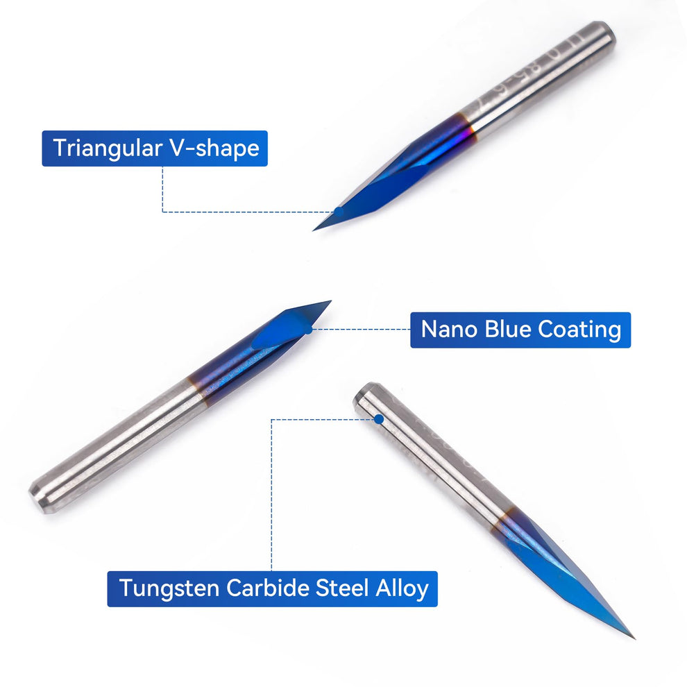20/30/45/60/90deg 0.1mm Triangular CNC Router Bits Set, 1/8” Shank ...
