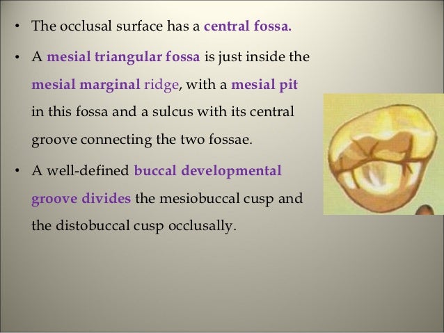 Maxillary right first molar Mesial triangular fossa Distal triangular ...