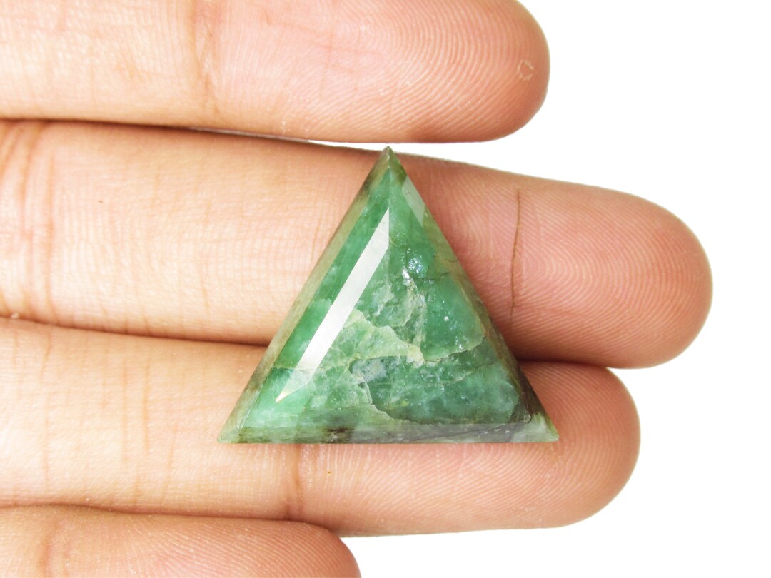 Natural Emerald Gemstone Triangle Shape Cabochon Faceted Rose Cut ...