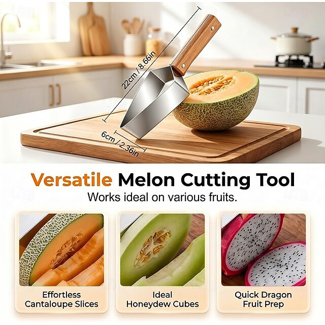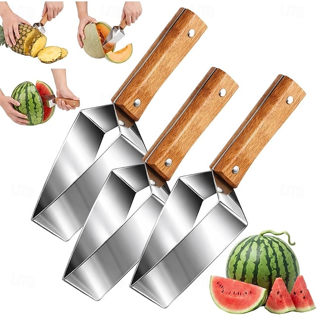 1 PCS Triangle Watermelon Cutter, Stainless Steel with Wooden Handle ...