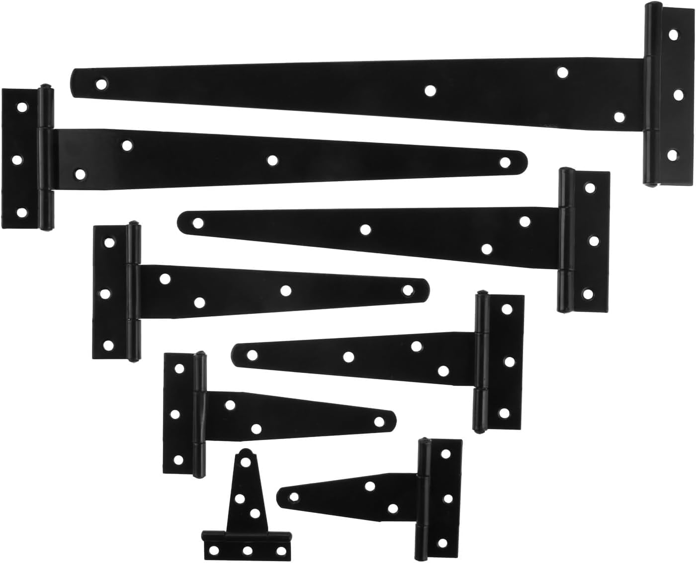 HEMOTON T Strap Hinges for Door Black Iron Material 8 Screw Holes Easy ...